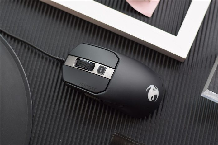Kain120 AIMO的整体外观还是很漂亮的,尺寸为124 mm×65mm×43mm,有一点修长,整体的握持感还是不错的。鼠标的重量为89个,表面进行了磨砂处理,更加有利于防止油污与防滑。