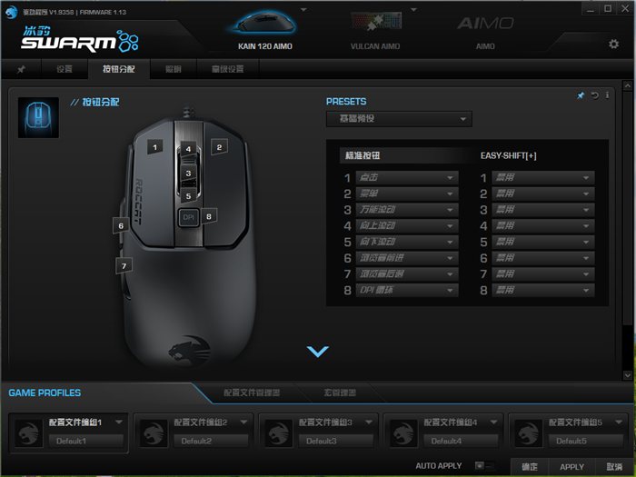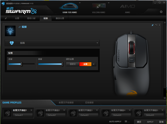 Kain120 AIMO需要配合驱动才能进行个性化设置与调整,在电脑上下载安装ROCCAT SWARM之后,启动软件,就可以对鼠标进行设置了。