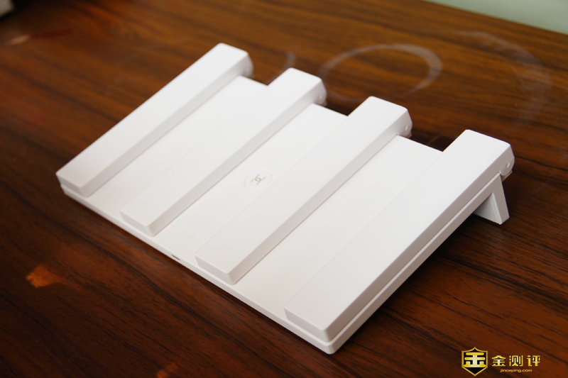 从侧面更能感受的到,无论是机身还是天线的设计,都是楞角分明,搭配白色机身,显得科技感十足,线条简洁到极致。