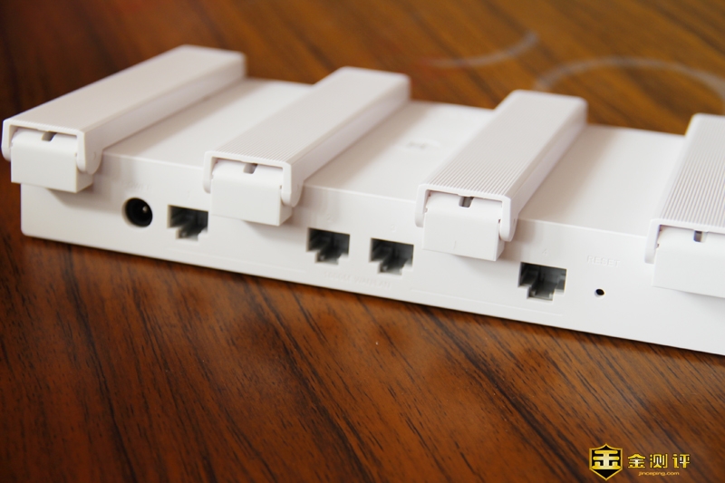 我们来看看路由器主机吧,机身超薄,四根天线折叠在机身的正面。