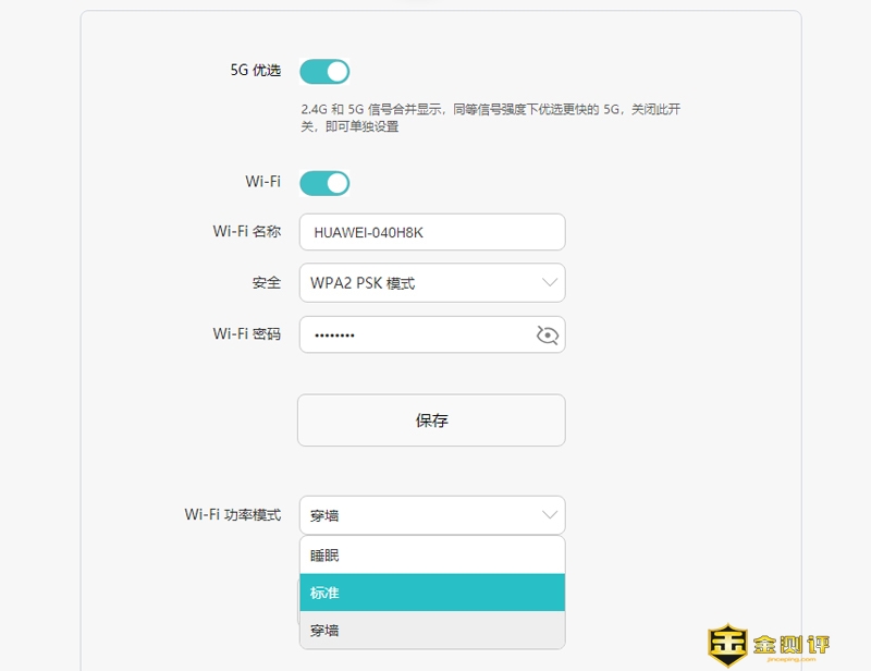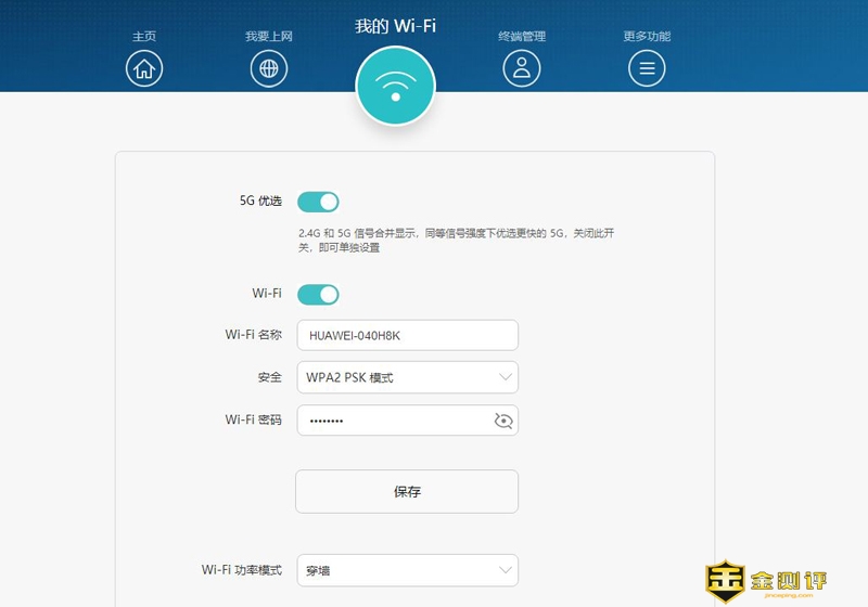 比如信号强度的调节。WIFI的功率模式一共有三种,可以根据需要来自行选择,当然我们可能更喜欢“穿墙”模式吧,毕竟家里房间还是挺多的。WIFI信号也是合并显示,也就是5G会和2.4G使用同一个网络名称,这样的好处是比较简单,缺点是可能有的设备就会选择2.4G网络,为了发挥出全部的网络速度,如果家里5G信号还比较强,建议单独打开5G通道,让设备可以强制使用5G频段。