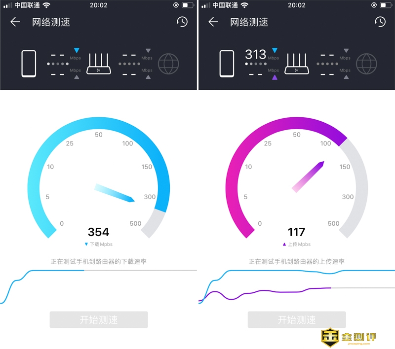 网速测试是在5G频段下进行,5G频段可以跑满全部带宽,真正达到带宽的峰值。经过测试,内网的速率可以达到313M,上传速率最高可达87M,外网的出口带宽为242M,上传速率为22M,完全达到了200M宽带所应有的水平。
