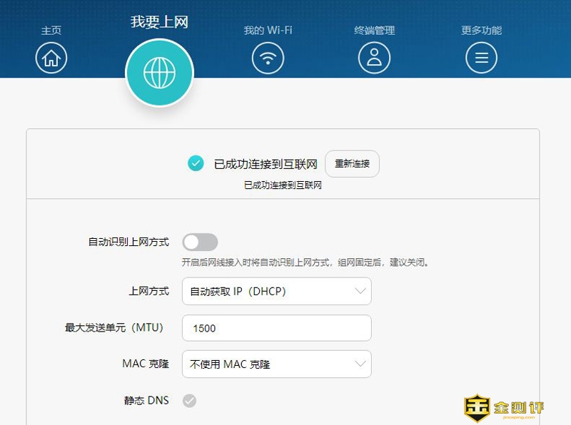 经过简单的配置——真的很简单,首先路由器会自动判断网络环境,推测出当前的接入方式,当然现在大多是PPPOE拨号接入,只要输入用户名和密码,然后设置好WIFI密码,就可以开始上网了,是不是够简单?