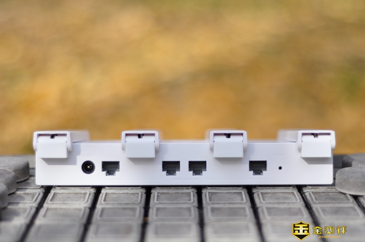 路由器背部,除了左侧的电源接口和右侧的复位键外,中间共有4个千兆网口,与其他路由器不同,这4个网口为WAN/LAN混合网口,使用时,不用区分WAN口还是LAN口,完全支持盲插,组网时,网线直接接入就完事大吉了。