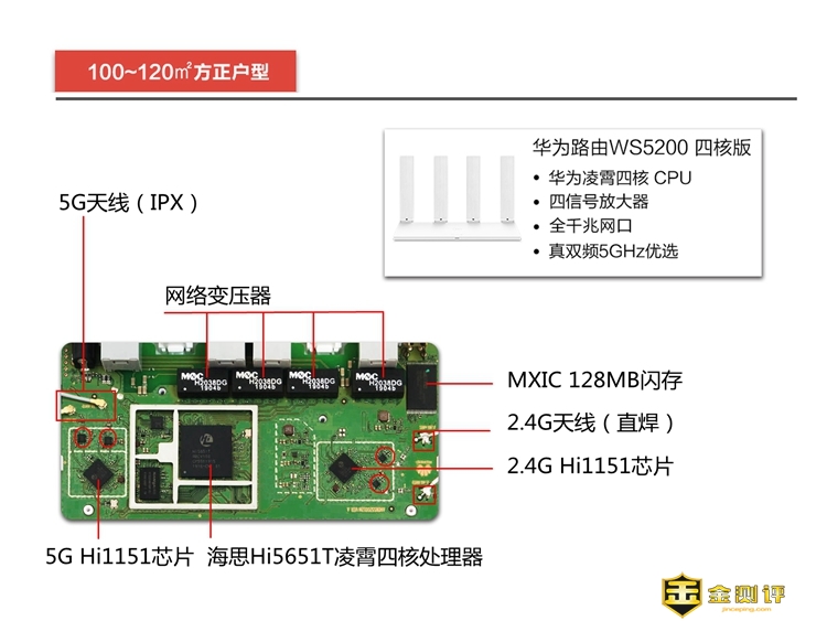 总之,华为WS5200四核版,升级的不仅仅是处理器核心,在主板布局方面也较前代做了较大调整,和官宣一致,非常适合120㎡的户型选用,可以提供有效的覆盖,5G天线使用IPX接口,喜欢动手的机友可以考虑尝试将5G天线更换为7dBi高增益天线,或许可以提升5G频段覆盖范围,但一定不要盲目追大。虽然两个频段芯片没有加装屏蔽罩,但考虑仅200出头的售价,就可以体验四核凌霄处理器、稳定成熟的系统、实惠的高增益天线组合,WS5200四核版确实可以担当120㎡户型的不错选择。