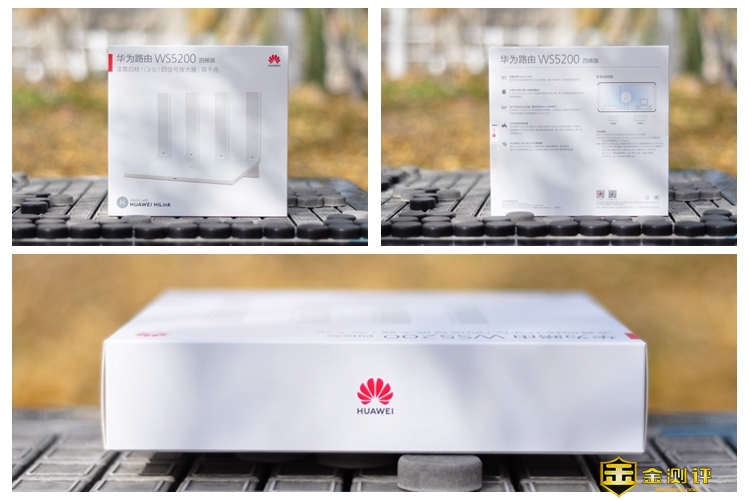 包装方面,WS5200四核版依旧采取小包装盒,保持华为自家的白红搭配风格,正面除可以看到路由器型号外,还可以直观看到产品渲染图,因此,不必担心买错东西;盒子底部一圈红色,用反色体现了华为的菊花LOGO;背部依然是华为要突出的主要特性。