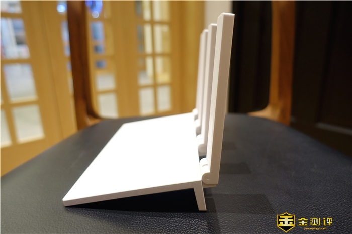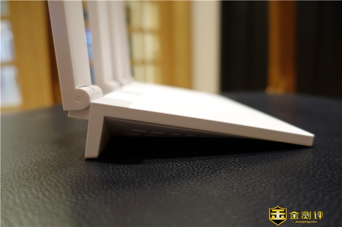 路由器的底部为斜切面的设计,左右分别设计了散热孔,不仅能够摆放平衡,而且散热效果也好。