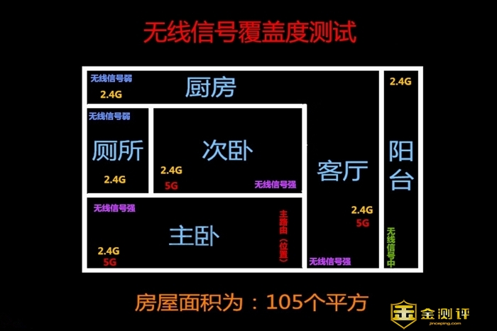 在Wi-Fi信号强度方面我也是通过实际的测试,同时也通过一张自绘草图可以发现华为WS5200四核版路由的四天线+四信号放大器的确不一样,无论是无线信号的覆盖率还是穿透率真的是扛扛的,我家的房子属于多层式住宅,房子的面积为105个平方,路由器的摆放位置为卧室。