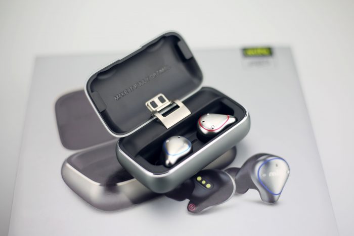 中间电池仓的设计未来感十足,同时整个舱体掂在手上非常有份量,应该是笔者用过所有的tws类的耳机中最重的一个了!2600毫安大容量电池,怪不得可以抗住15次的充电续航次数!最上面印有Q5标志的纸盒则是耳机产品里比较常规的配件,包含了6对硅胶套,以及相关产品介绍、说明、合格证和一根充电线!
