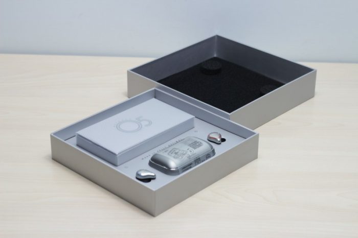 充电收纳盒的底部印有O5字样,还有一些基本的参数信息,包括了电源参数为5V 1A,内置了2600mAh容量电池,整体设计还是非常不错的。