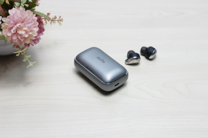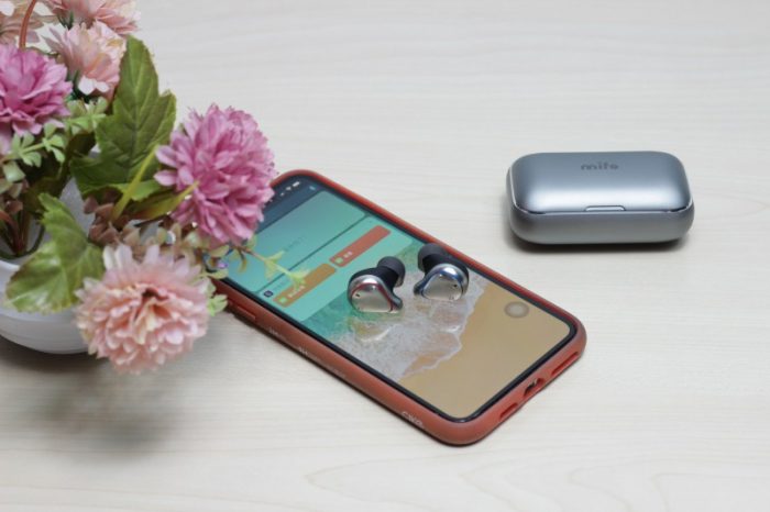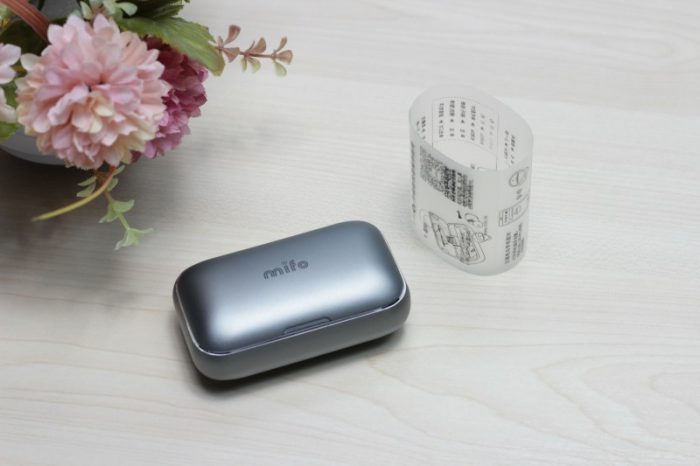 O5 Plus如同充电收纳盒一样,同样采用了金属外壳,金属质感非常强烈,相比于塑料外壳的真无线耳机更高大上一些,外壳正面印有"mifo"的LOGO.