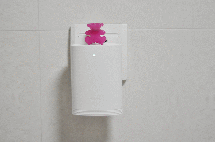 子路由尺寸为75 mm x 46.3 mm x 103mm,看起来就好像一个缩小版的母路由,只是正面没有Hilink键,而仅仅上部一个指示灯,下面一个HUAWEI标识;顶部是华为的菊花LOGO,背面则是三相插头;LAN口和重置按钮位于子路由底部,这也使得子路由外观更加整洁。