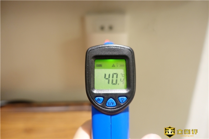 因为我的子路由是插在次卧的,而且次卧顶上装了筒灯,直线照射下来,正好照在子路由上,我也是在子路由开启48小时后,通过测温枪,测得的温度值为40.4℃,这个温度还是可以的。