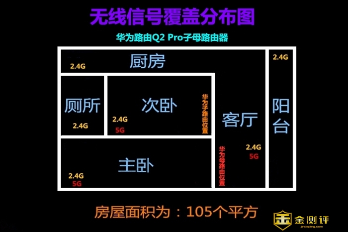 为了更加直观的让大家看到无线信号的覆盖度,我也是通过老牌测试软件WirelessMon来进行各个点的测试,分别是客厅、书房、主卧、次卧、厨房、阳台进行测试,从测试的数据上来看,覆盖的非常明显,不过这里要说的是2.4G信号在每个角落都能搜索的到,而切换5G信号就不稳定了,虽然2.4G的下载速度没有5G信号的快,但是2.4G的信号确实覆盖度要强,这也是毋庸置疑的。