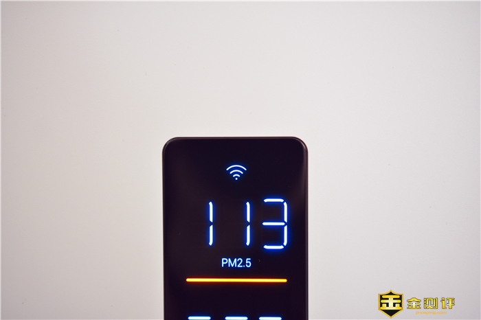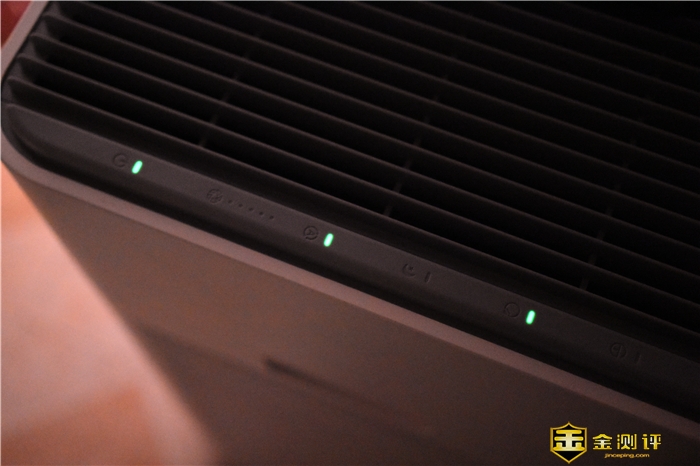此时我们打开空净,由于在自动模式下检测到PM2.5浓度已经爆表,因此它马上以5档风力开始清洁空气,在逐渐将空气中的PM2.5浓度降低后,工作档位也随之下降,由最初的5档逐渐降至4档、3档、2档直至1档。PM2.5指数也逐渐下降,空气质量指示灯由原来的红色逐渐变为绿色。