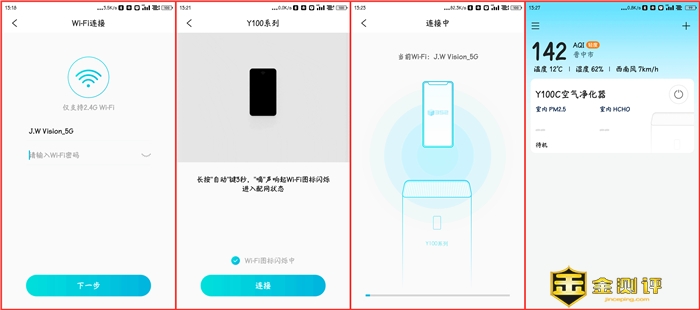 输入家用WiFi密码并连接,即可在首页看到当前空净的工作状态。