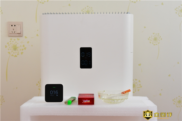 那么这款空净的净化能力究竟如何呢?我们还是需要通过实际使用来测试。我们在一间密闭的卧室内,测得在未点燃香烟时室内的PM2.5浓度为19mg/m³,使用米家PM2.5检测仪作为辅助对比,测得浓度为16mg/m³。