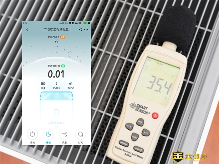 除了可以手动调节空净的档位之外,我们还可以将空净置于自动或睡眠2档模式下运行。自动模式顾名思义,会根据环境中颗粒物浓度的情况进行工作,这里就不再赘述。睡眠档模式下,我们通过手机APP调节发现,其风量进一步降低,降至150m³/h,而噪音也同步下降,降至35.4dB。