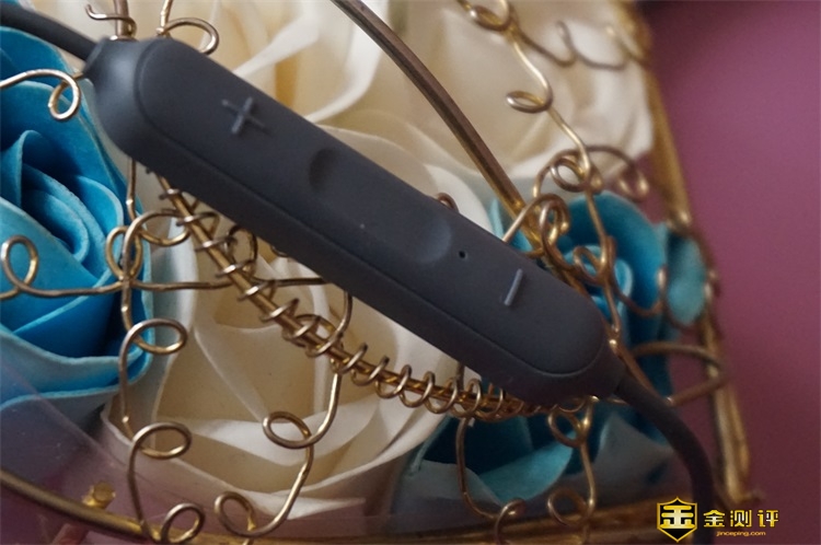 LINNER聆耳S50蓝牙耳机的耳机线部分是从颈圈主壳部分延伸出来,采用了TPE扁平化的设计,可以更好的防止缠绕,线长30厘米左右,刚好略长与颈圈到耳道的距离,长短适中,右耳线部分放置了独立的控制模块,控制器由加减键及多功能键组成,并均使用凸起的设计可以通过触感轻松区分不同的按键,方便盲控。