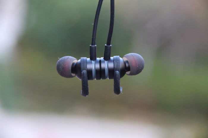颈挂并不算粗,外表的硅胶材质相当柔软、亲肤,整个耳机的重量也只有25克,在同类产品中可以说是重量控制的非常不错,佩戴时也不会有“挂颈”式耳机特有的那种压迫感。