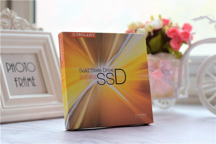 台电极光固态硬盘的包装金灿灿的,给人"富丽堂皇"的感觉,很漂亮。包装的正面、反面等印有产品的名称、容量、等信息;同时,我们可以看到,这款固态硬盘的质保时间是3年,不用担心售后的问题。