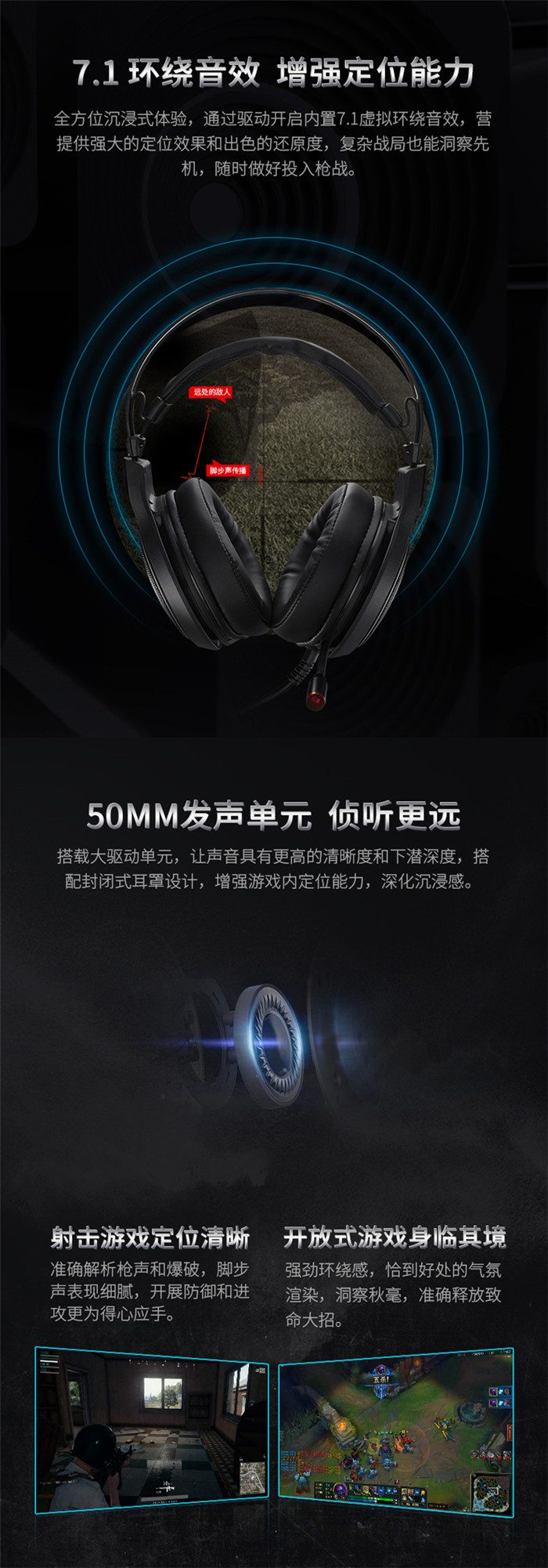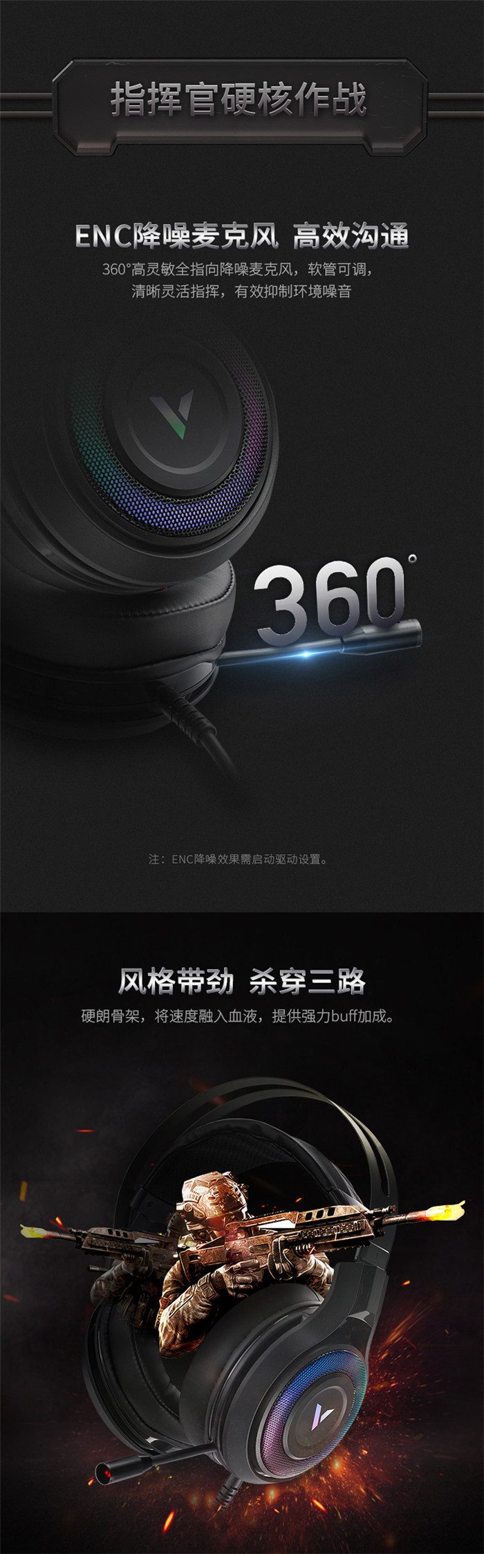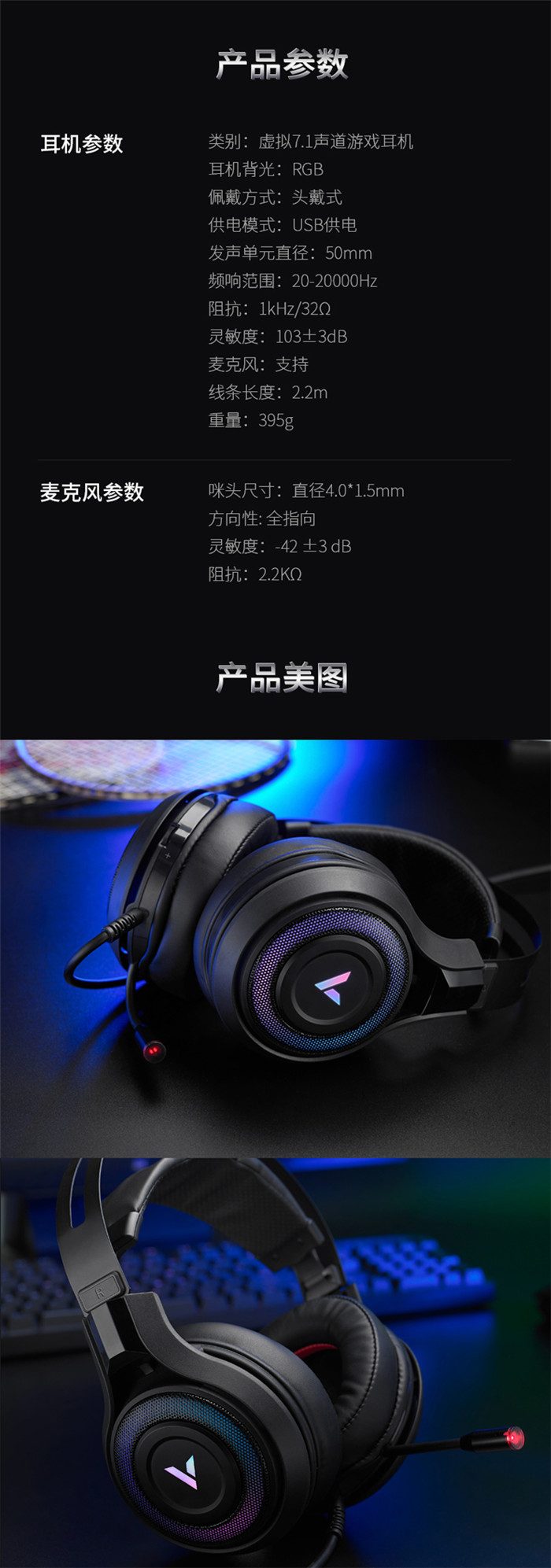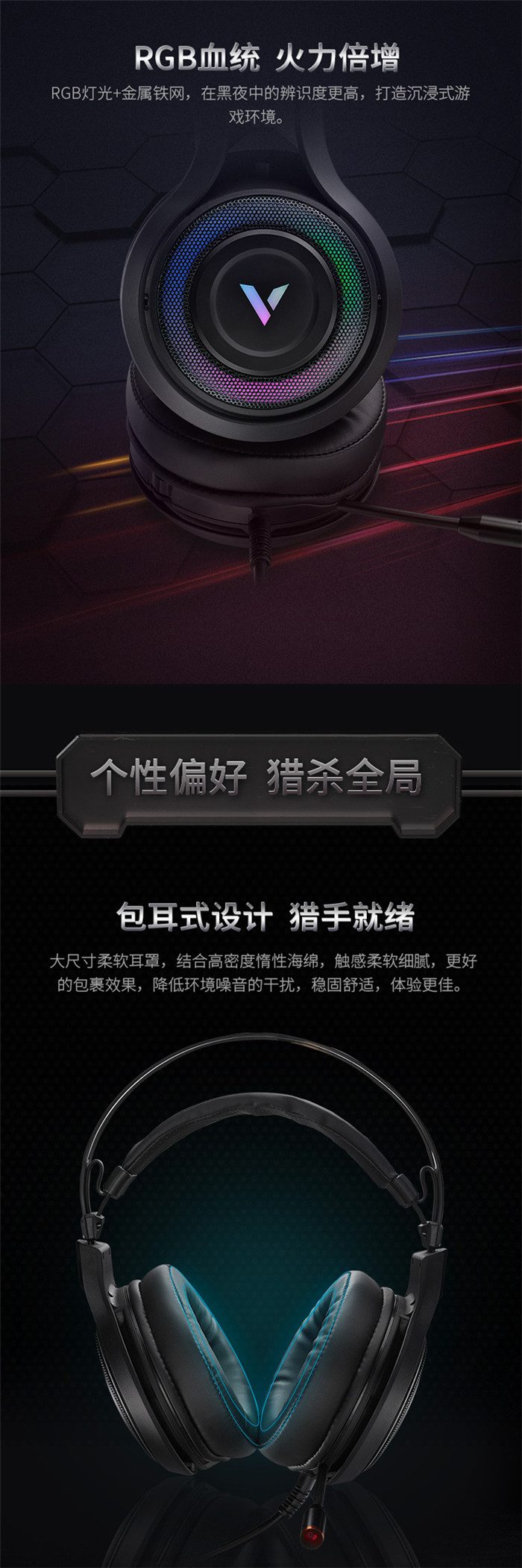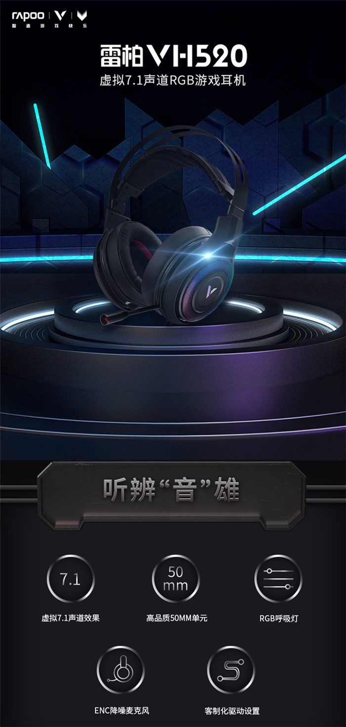 ◆产品链接:雷柏VH520虚拟7.1声道RGB游戏耳机