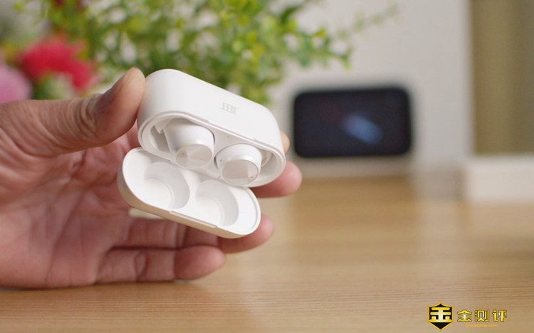 JEET Air Plus蓝牙耳机,充电仓设计较为小巧,内置400mAh的容量,能够为耳机充电约3次左右,充电仓重量仅为34克,连同两只耳机一起,也不足50克,非常小巧便携。充电仓背面有一只圆形按键,用来重置耳机以及同手机配对