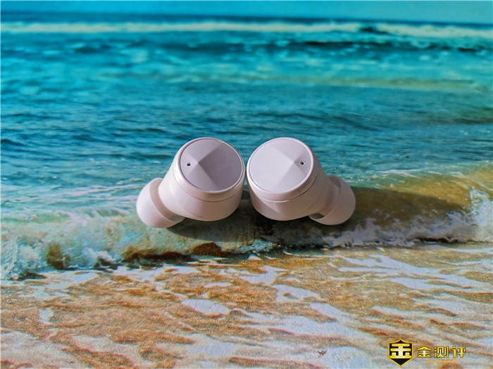 耳机正面为触控键及麦克风,采用四面体型设计,既实现了功能,也凸显了耳机的颜值。围绕着触控键,设置了多彩光圈,在阳光的照射下会显现多样的色彩,为耳机机身带来更靓丽的色彩。