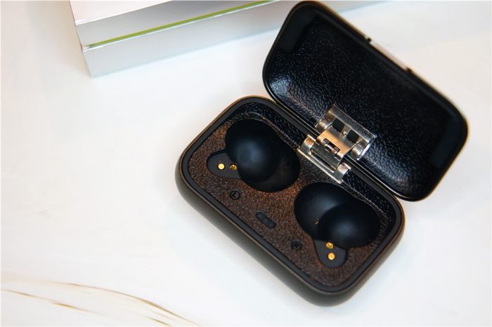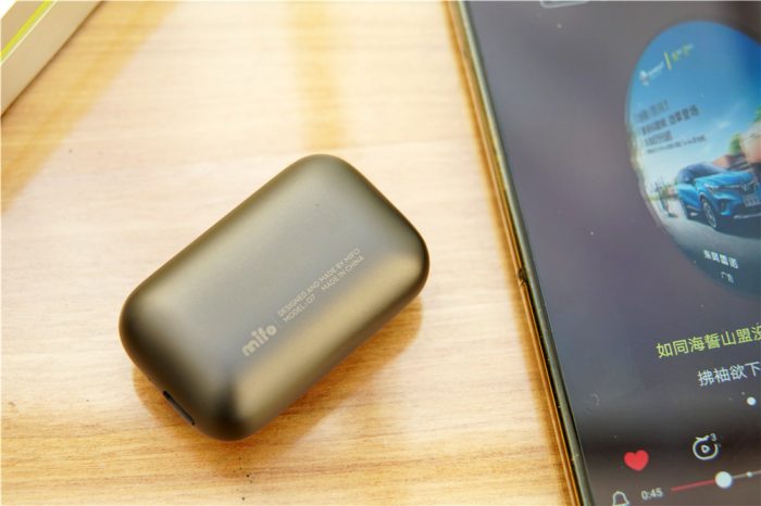 包装盒的内部的O7使用金属哑光色的耳机充电收纳盒,有沉甸甸坠手的感觉反而很舒服,MIFO的LOGO刻印在收纳盒的表面,使用说明书和数据线分别存放在不同的包装盒中,不过笔者觉得肯定不会有多少人拆开这些仔细看的,所以就不照了。反正我是比较懒的拆。