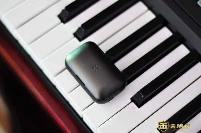 魔浪O7充电仓采用了金属材质,辅以喷砂及冲压工艺,磨砂质感彰显出沉稳和奢华;充电仓尺寸为62mm×38.2mm×25.4mm,重量为83.5克,有种精致小钢炮的感觉。相比同类产品的塑质充电仓,通体金属材质无疑更具抗摔能力和更好的握持感。