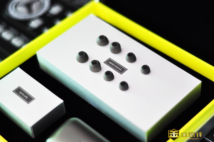 包装盒内的配件摆放整齐、格局清晰、分类详细。随机附带充电线、硅胶耳帽、说明书。其中用户说明书和充电线分别具有独立的小包装,并且包装采用偏硬质地的材料,显得格外高大尚。