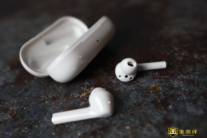 FlyPods3的耳机,跟airpods2还是有几分相似之处的,比如洁白无瑕的外壳,还有距离感应器,3个麦克风。官方描述FlyPods3有3个麦克风用于通话降噪,2个麦克风用于双重降噪,但我找来找去耳机上只有3个小洞洞,估计其中有2个是同时起到通话降噪和环境音降噪的?具体不得而知,后面还是看看效果吧。