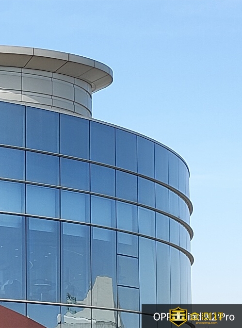 放大画面细节来看,OPPO Find X2 Pro上这颗IMX689的优势更明显,楼体玻璃幕墙边缘的细节清晰,这也是高像素带来的绝对优势。