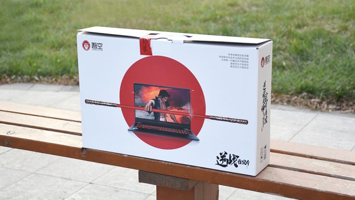 里面一层主包装就要精致一些了,纯白色的箱体简洁利落,一侧印有“悟空游戏本”字样以及一张悟空人物的3D渲染图,另一侧则是悟空从屏幕中伸出金箍棒的效果图,两张照片都非常震感,给人一种强劲势头的感觉,也变相传递出这台游戏本拥有超高配置的关键特点。