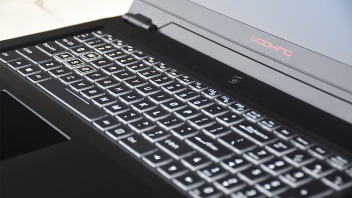 吾空S17r的C面较大的区域都被键盘所占据,键盘部分微微凹陷与C面,也避免了按键凸起与屏幕造成摩擦。S17r采用了一般15英寸笔记本使用的全尺寸键盘,保留了右侧的数字键盘区域,对于经常录入数字的用户来说比较友好。键盘的键程与一般笔记本的键盘基本一致,不过在手感上比较绵软温润,没有那种“噼里啪啦”的廉价感。