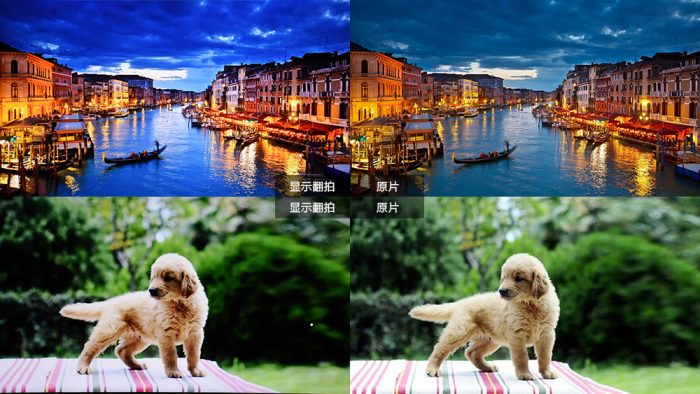 可视角度也是IPS面板的优势之一,上图为在上下左右及正面视角拍摄的同一样张的显示效果,观察发现略有些许的颜色变暗现象,但总体并不太明显。