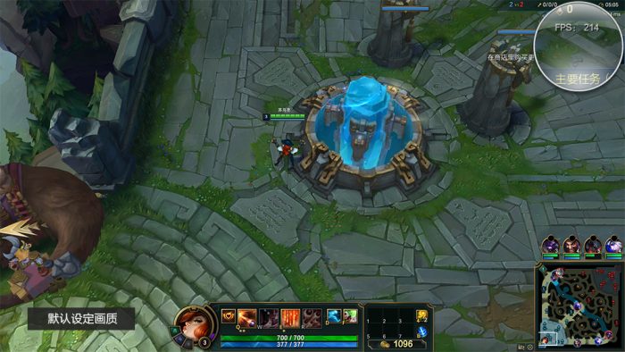 英雄联盟对于电脑配置的要求并不是很高,在默认匹配的画质下FPS可以达到214帧左右,并且整场游戏下来浮动也比较小,表现比较稳定。手动将画质全部调至最高,游戏帧率保持在144帧左右,但相比之前画面的细节可以感受到明显的提升,比如人物边缘的细节以及阴影部分等。