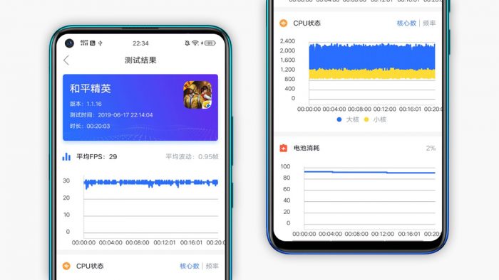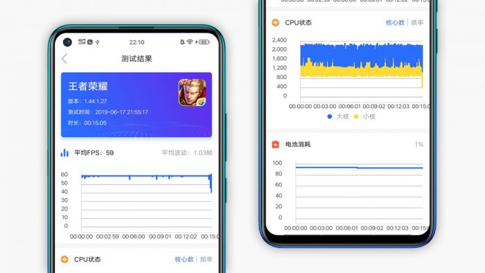 游戏体验是最直接的榨干手机SOC性能的方式,也是大多数消费者在使用手机过程中最耗资源的使用场景,一款中端SOC在游戏方面会带来怎样的表现呢?在这个环节使用爱否科技出品的快否App进行辅助测试,便于直观的记录和绘制游戏过程中的帧率变化情况。参与测试的游戏腾讯旗下的两款热门手游《王者荣耀》和刚刚更名升级的《和平精英》。