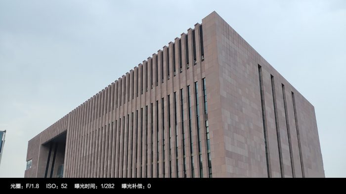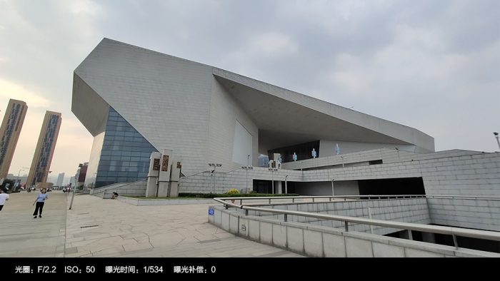 切换至广角模式,可以拍摄的画面宽幅会更广,正如上面一组样张,很好的将山西大剧院的楼体以及整个广场收纳其中。不过广角模式在画面边缘处势必会产生一定的畸变,比如左侧远处的两栋建筑明显向内倾斜。