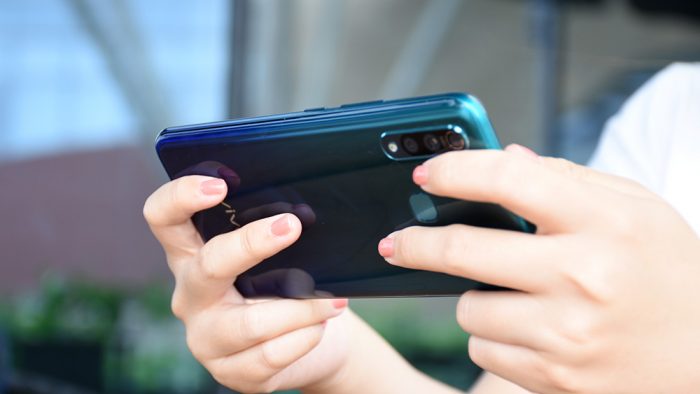 vivo Z5x拥有极夜黑、幻影黑和极光色三种配色,我拿到的这台恰好是时下流行的极光色。vivo在渐变色的处理上也有着自己的独到的想法,没有盲目跟风加入一些特殊的纹理质感,而是以纯色渐变为基础,通过不同平面对光线的反射营造出极光的感觉,视觉上会更加纯粹利落。