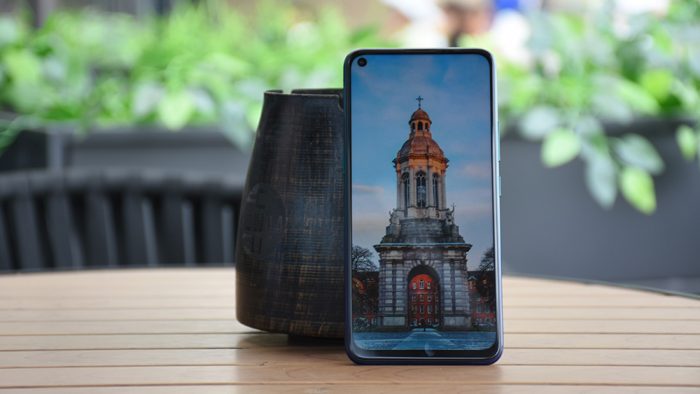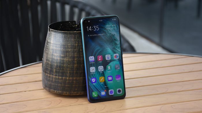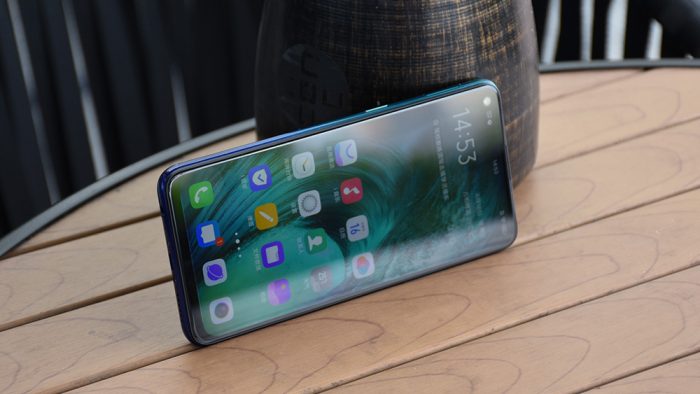 vivo Z5x采用了业内主流的三明治结构,整个手机由屏幕面板、中框以及背部盖板三个部分构成,而当下消费者和厂商们共同关注的焦点都集中到屏幕上。 vivo Z5x在全面屏思路上采用的是挖孔屏解决方案,官方称其为“极点全面屏”,意在将缤纷万象浓缩为一点,每一项技术的背后总要有一个动人的故事。相较于刘海屏和水滴屏,挖孔屏占用屏幕面积更小,并且可以根据机身内部结构设计选择将摄像头放置在屏幕左上角或右上角,通过软件UI方面的配套优化使其在视觉观感上并不会特别突兀。这颗前摄的直径只有4.59mm,搭配vivo Z5x这张默认壁纸,左上角刻意设计为深色,以最大限度的削弱摄像头的存在感。