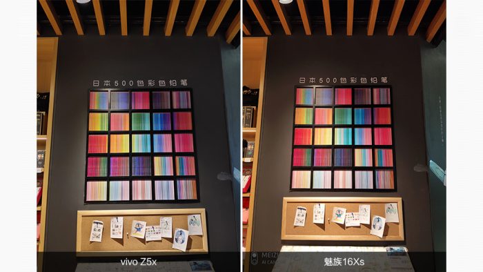在光线比较复杂的环境下,两者的抗炫光表现基本相当。vivo Z5x的画面整体亮度更低,纯净度更好;魅族16Xs画面亮度更好,但同时带来了更多的噪点。