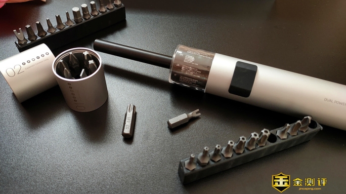 配备的螺丝刀批头是S2合金钢批头,属于高硬度工具钢,硬度达到60hrc,比大多数同类产品材质更优越,连续使用一周时间,批头居然都没有磨损的迹象。