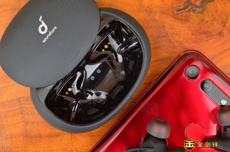 耳机充电位是磁吸方式,即使将盒子倒过来耳机也不会掉下来。盒子表面是磨砂工艺,手感细腻也能在一定程度上抵抗指纹。