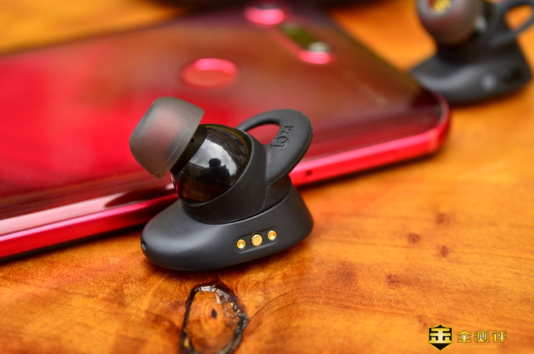 耳机有3个充电触点,猜想可能与快速充电有关,充电仓的两边触针是弹性的,依靠耳机自重将其压下,然后中间的触点接触,构造很复杂。