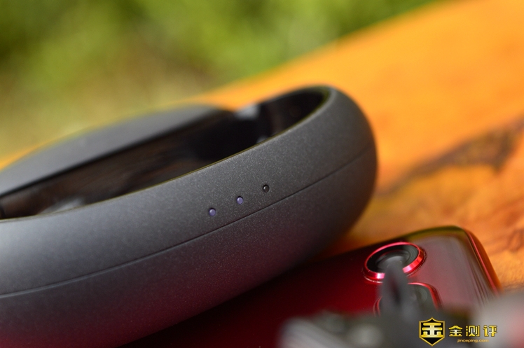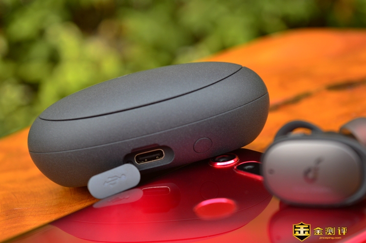 充电仓是Type-C插口,插口旁边有一个圆形按钮,既可以查看电量也能够将耳机复位。