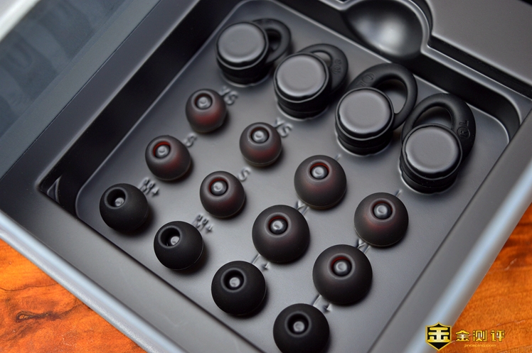 产品包装、附件一笔带过,不过附件中的耳帽确是非常的丰富,除了耳机上面一对硅胶套和环形耳撑外,还附送了大小不同6对硅胶套和2对环形耳撑,够专业、够诚意。