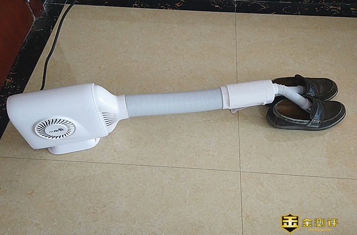 把可伸缩软管外接烘鞋器的两个出风口分别插入鞋内,然后开机,选择烘暖模式,可以使用烘鞋。大约过30分钟,鞋内有湿气没有,穿上去,感觉很干爽,舒适。