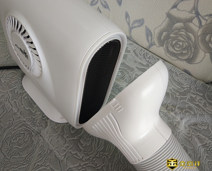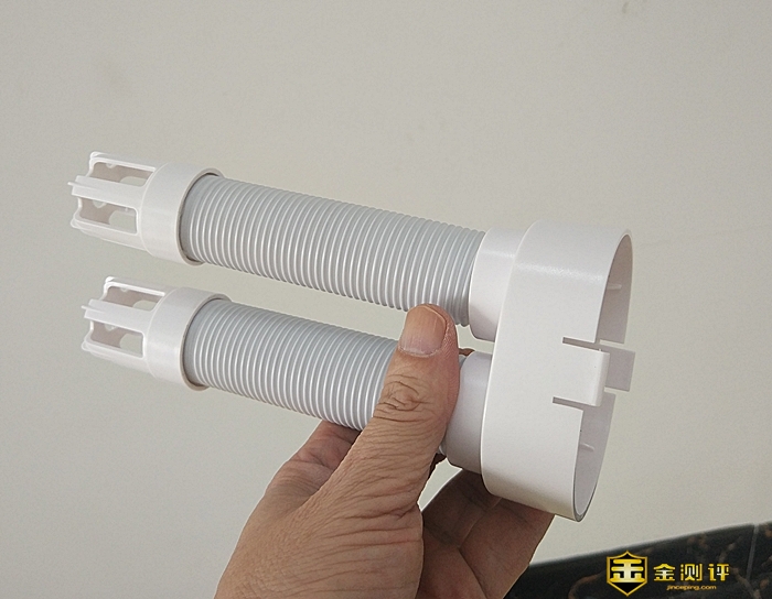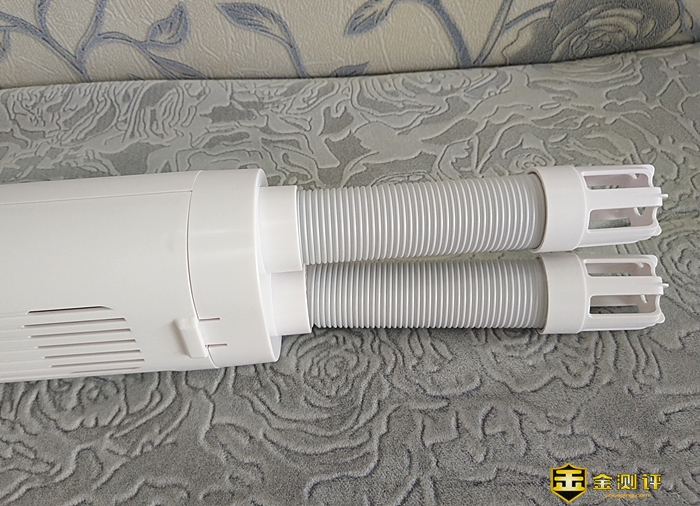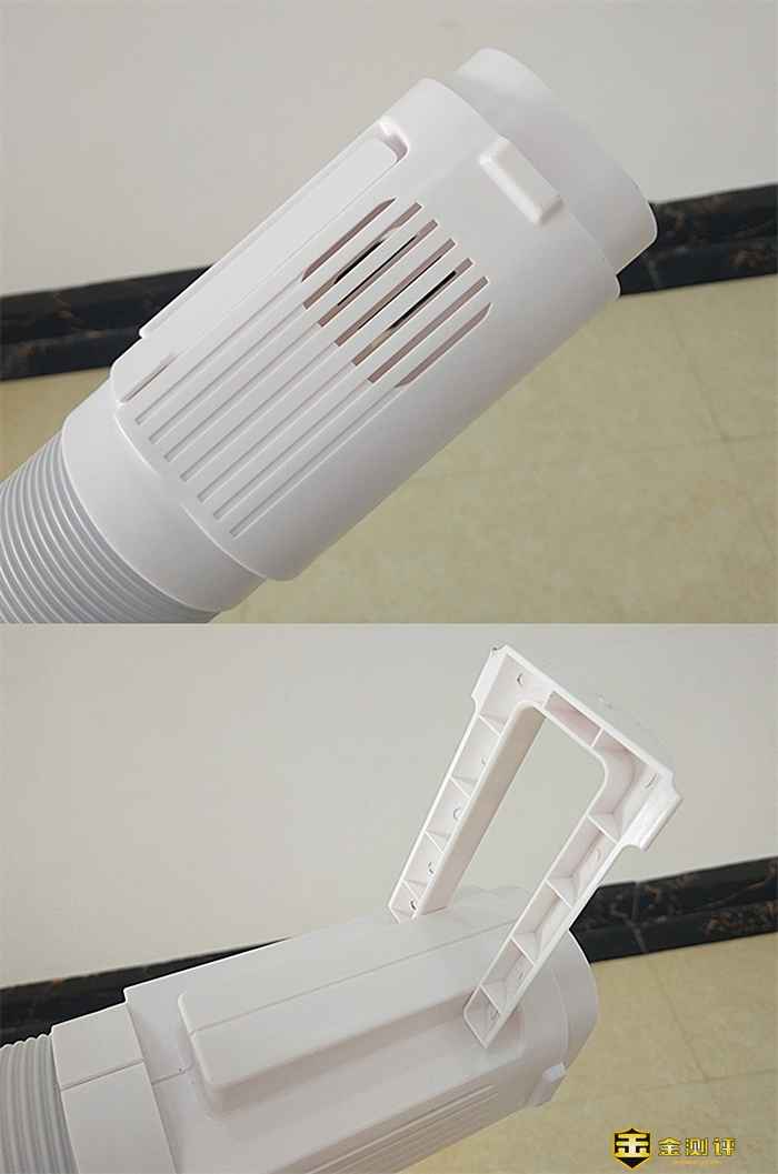 3D循环出风接口的两端是接口,中间位置是伸缩软管。与主机接口设有4个插入卡扣,而另一个接口不仅设置了接入卡扣锁孔,还贴心地设置放置支架。