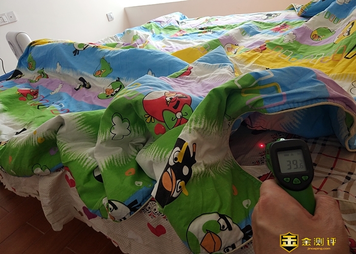 开机前,测得被窝的温度为23度左右。